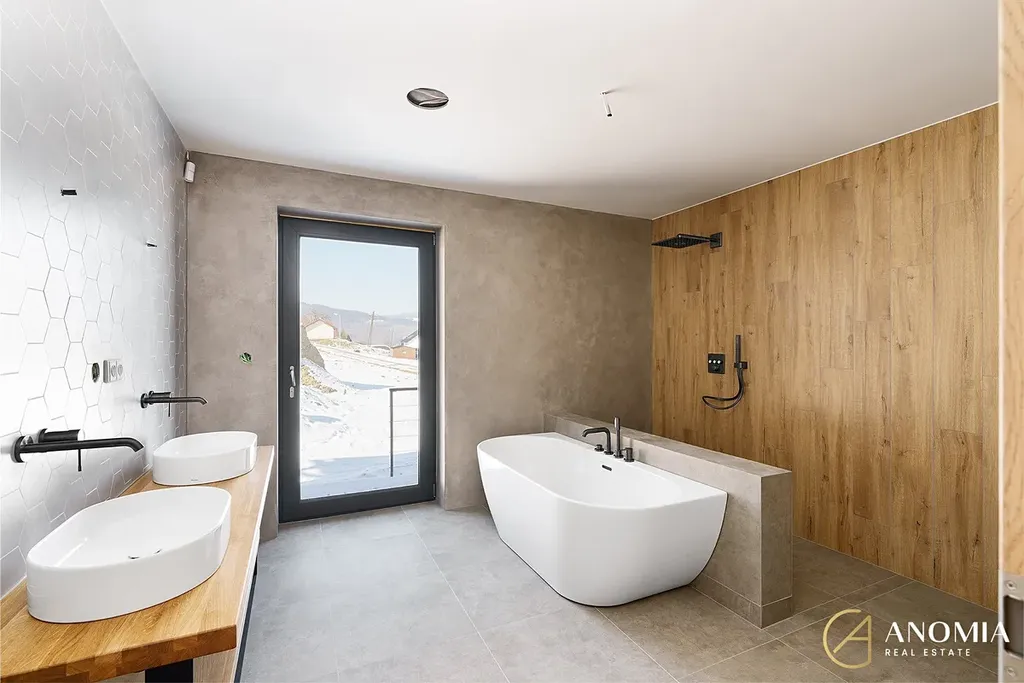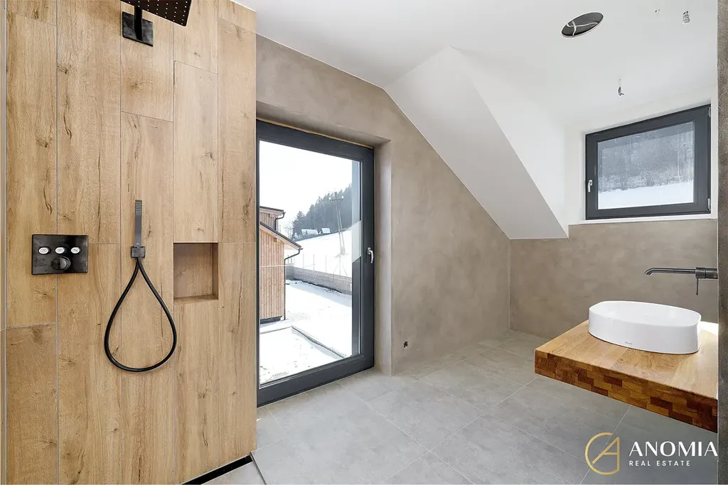 Představujeme vám jedinečnou příležitost stát se majitelem luxusní horské vily zasazené do srdce Krkonošské přírody. Tento výjimečný dům, stojící na samostatném pozemku o rozloze 1 040 m², nabízí spojení moderního bydlení s klidem horské krajiny.