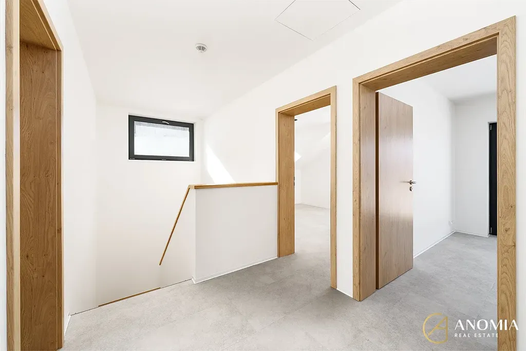Součástí domu je zabezpečovací systém (Jablotron) a chytrá domácnost od firmy Loxone, která umožní budoucímu majiteli pohodlné a intuitivní ovládání všech funkcí (osvětlení, vytápění, reproduktory v koupelnách..). V případě, že byste měli zájem o kompletní dokončení interiérů, je již připravený kompletní návrh od ateliéru Terakon s.r.o., jehož ukázku můžete vidět na vizualizacích.