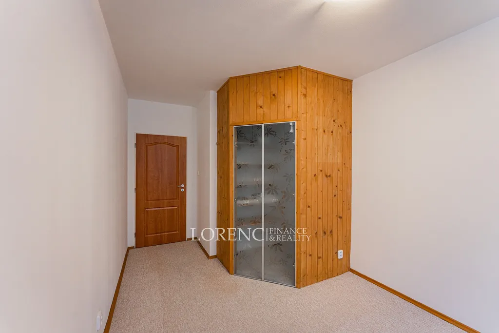 Další místností je samostatný, neprůchozí pokoj o velikosti 16 m², který je vybaven praktickou vestavěnou skříní a může sloužit jako ložnice, dětský pokoj nebo pracovna. Ze vstupní chodby jsou dále přístupné všechny ostatní místnosti – koupelna s vanou o velikosti 3,5 m², samostatná toaleta (2 m²) a praktická komora, která poskytuje dostatek úložného prostoru.