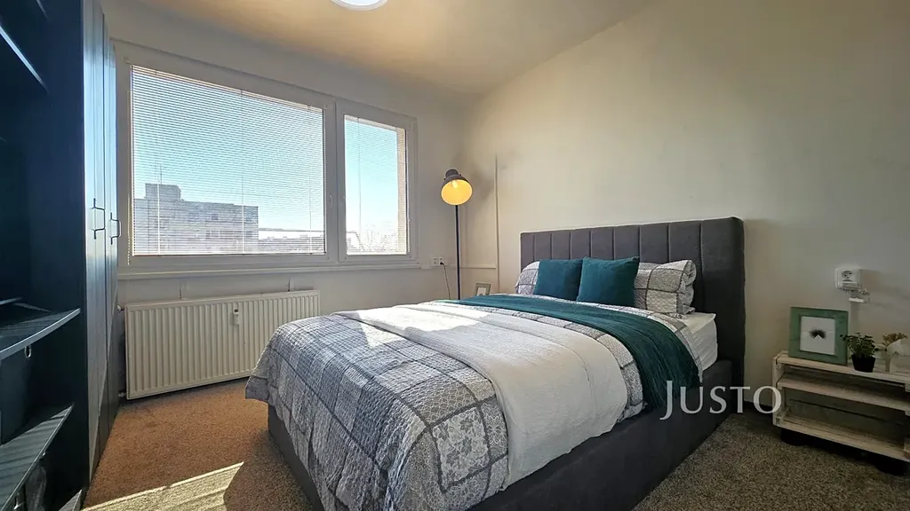 Byt je světlý a slunný, nabízí také velké úložné prostory v předsíni. K bytu náleží sklep.