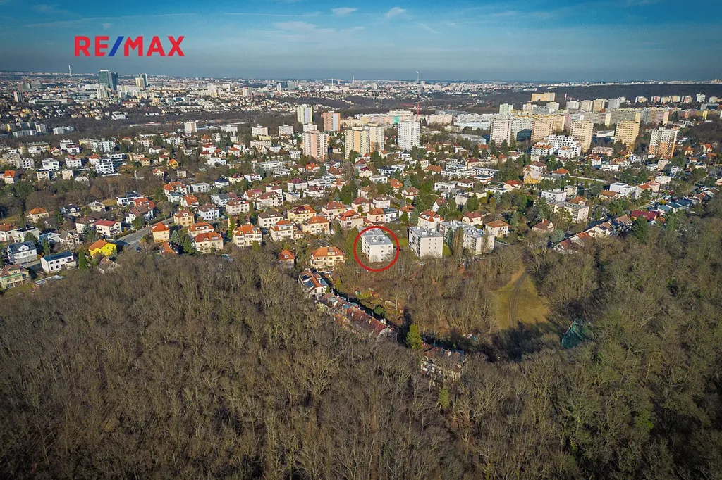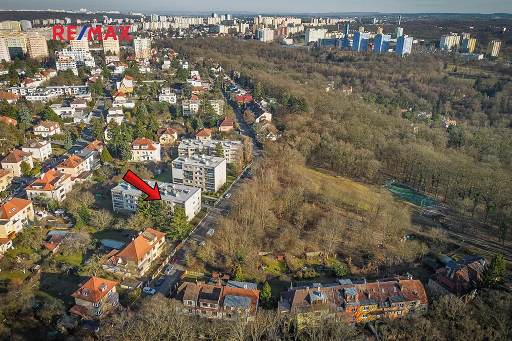 Klidný čtyřpodlažní dům na vlastním oploceném pozemku a s pouze 10 byty prakticky přiléhá k místnímu lesoparku se sportovištěm a dětským hřištěm.
