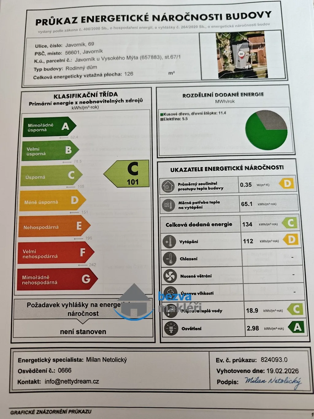 134 kWh/m2 za rok