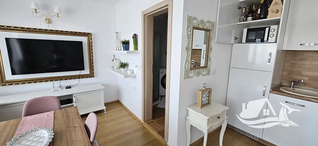 Právě v takové atmosféře se nachází apartmán v prestižním komplexu Sweet Homes 6 na Slunečném pobřeží. Prostor je světlý, promyšlený a působí jako příjemné útočiště u moře, kde se snoubí pohodlí moderního bydlení s uvolněnou atmosférou přímořského letoviska.