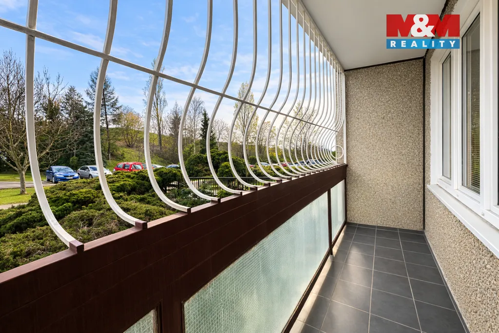 Součástí nemovitosti je také balkon o velikosti 5 m², ideální pro odpočinek či ranní kávu, a sklepní kóje o velikosti 4 m², která zajišťuje praktický úložný prostor. Dispozice bytu je velmi funkční – centrální chodba přehledně rozděluje jednotlivé místnosti, přičemž prostorná kuchyň je oddělena od dvou dalších pokojů, což umožňuje variabilní využití například jako obývací pokoj, ložnici, dětský pokoj či pracovnu.