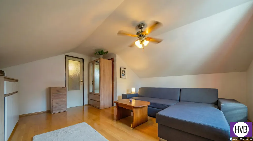Dispozice domu - v prvním nadzemním podlaží se nachází kuchyně, koupelna vybavená sprchovým koutem, samostatná toaleta a pokoj vhodný pro využití jako ložnice nebo pracovna. Součástí přízemí je také technická místnost a vstup do suterénu. Druhé nadzemní podlaží nabízí jeden velkorysý obytný pokoj a další menší samostatný pokoj, který lze využít jako dětský pokoj či šatnu. Komfort tohoto patra zvyšuje druhá koupelna s rohovou vanou a toaletou. Nejnižší úroveň domu tvoří tři samostatné sklepní prostory, které poskytují nadstandardní skladovací kapacity. K domu přiléhá udržovaná zahrada s jižní orientací a terasou.