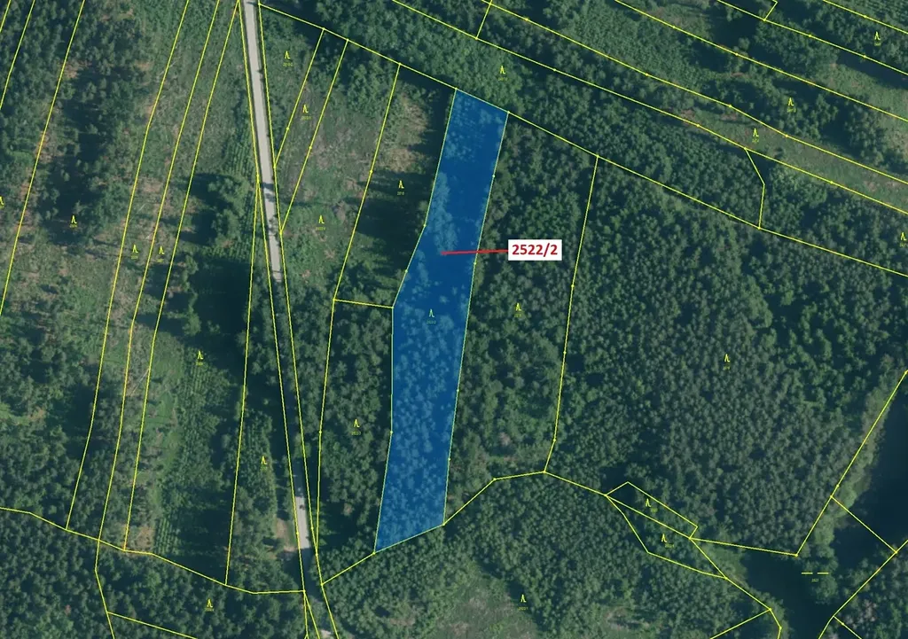 Lesní pozemek o výměře 8933 m2, parcelní číslo 2522/2, podíl 1/1, katastrální území Kunžak, obec Kunžak, obec s rozšířenou působností Jindřichův Hradec, okres Jindřichův Hradec, Jihočeský kraj. Po těžbě.