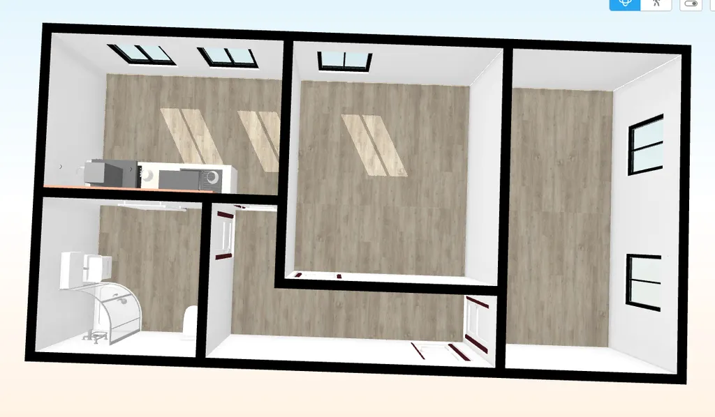Byt je situován v 1. nadzemním podlaží cihlového domu. Kuchyně o velikosti 9 m² je vybavena kuchyňskou linkou s vestavěnou myčkou, troubou a plynovou varnou deskou. Kuchyně je dostatečně prostorná i pro umístění jídelního stolu. Praktickým prvkem je potravinová skříň s výsuvnými poličkami. Koupelna o velikosti 5,1 m² je vybavena sprchovým koutem, závěsným WC, umyvadlem se skříňkou, topným žebříkem a přípojkou na pračku. Pokoje o velikosti 12,8 m² a 11,3 m² jsou neprůchozí a oba jsou přístupné z předsíně. Jeden pokoj je orientován na jihozápad a druhý na severozápad.