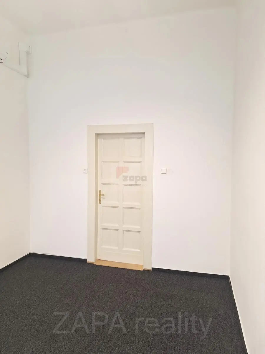 Kancelář je po rekonstrukci (vymalovaná, nové žaluzie, nový koberec) a je nezařízená s vysokými stropy 3,7 m, výhled z oken je do klidného tichého vnitrobloku.