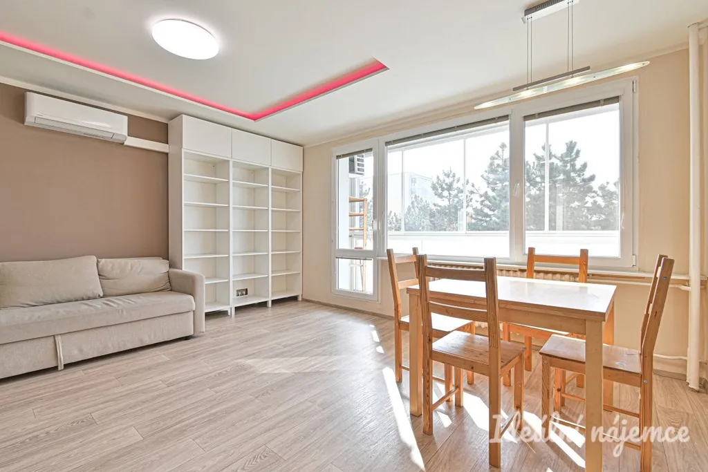 Byt se nabízí vybavený dle fotografií. Kuchyňská linka je prostorná a nabízí dostatek pracovního i úložného místa. Součástí kuchyně je také jídelní kout. Obývací pokoj působí velmi světlým a otevřeným dojmem díky velkým oknům. Další dva pokoje mohou slouží jako ložnice a dětský pokoj. Koupelna je vybavena vanou a umyvadlem, toaleta je samostatně.