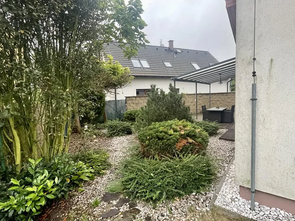 Nabízíme k prodeji moderní rodinný dům v malebné obci Drahelčice cca 10 minut od Prahy (metro Zličín). Dům byl postaven před cca 15 lety na velkorysém pozemku v klidné části obce. Kromě pěkné udržované zahrady s bazénem a terasou disponuje dostatečným počtem parkovacích míst (garáž a zpevněné plochy na pozemku), a to i pro větší vozy. V přízemí domu se nachází velkorysý obývací prostor s východem na terasu, luxusní kuchyně s jídelnou, ložnice, koupelna, technická místnost a garáž s průchodem do vstupní haly domu. V patře jsou dvě samostatné ložnice, dvě koupelny, dvě šatny a půdní prostor přebudovaný na úložný prostor. Celý dům působí velmi příjemným a útulným dojmem. Topení zabezpečuje kondenzační plynový kotel, kdy v přízemí je kombinace podlahového topení a radiátorů, v patře jsou radiátory. Dům má zabezpečovací zařízení. Obec Drahelčice je příjemné bydlení pro rodiny s dětmi, v obci je škola i školka, okolí vybízí k procházkám a sportování.