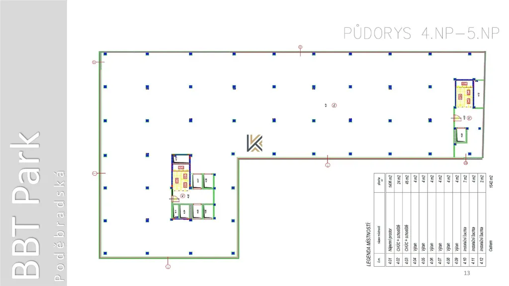 Nabízíme k pronájmu obchodní / kancelářský prostor o výměře 1 647 m² ve 3. nebo 4.patře v novostavbě na atraktivní adrese Poděbradská 964/36, část obce Vysočany, Praha 9. Prostory jsou ve stavu shell and core, s možností zřízení toalet a kuchyněk v místech dle potřeb nájemce. Každé patro má samostatný výtah a je přístupné 24/7. Světlá výška stropů 2,9 m, prostory mají otevíratelná okna. Napojení internetu na optické kabely. Skladovací prostory v 1.PP. Kamerový systém monitoruje vstupy do budovy, garáže a společné prostory. Pouze pro plátce DPH.