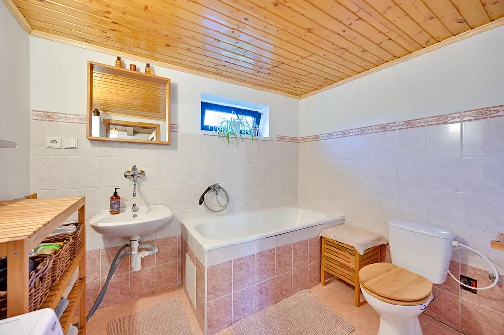Dům disponuje užitnou plochou 91 m², která zahrnuje prostorný obývací pokoj s kuchyní a pracovnou v přízemí, dětský pokoj v patře, kde je prostor pro vybudování ještě jednoho pokoje. K domu náleží prostorná krytá terasa o rozloze 50 m² a stodola s 78 m². Pozemek s rozlohou 746 m² poskytuje dostatek prostoru pro venkovní aktivity nebo zahradničení.