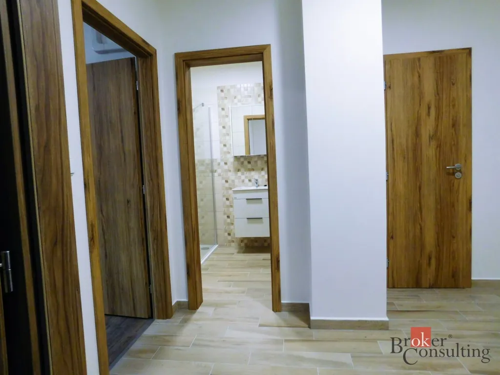 V zastoupení majitele nabízíme pronájem prosvětleného bytu 2+kk přímo na náměstí města Kyjov. Byt disponuje vstupní chodbou, ložnicí, obývacím pokojem s kuchyní, koupelnou a samostatným WC. Byt má vlastní podlahové vytápění a vlastní ohřev vody. Je zařízen moderní kuchyňskou linkou se spotřebiči. Nachází se ve druhém nadzemním podlaží cihlového domu, podlahová plocha je 67 m2. K bytu je možné navíc pronajmout parkovací stání ve vnitrobloku domu. Nájemné činí 15.000 + 2.500 zálohy na energie, kauce je jeden nájem + energie. Provize činí jeden nájem + DPH. Fotografie jsou pouze ilustrativní, a to z vedlejších bytů ve stejném domě, kde je vybavení a provedení všech bytů velmi podobné.