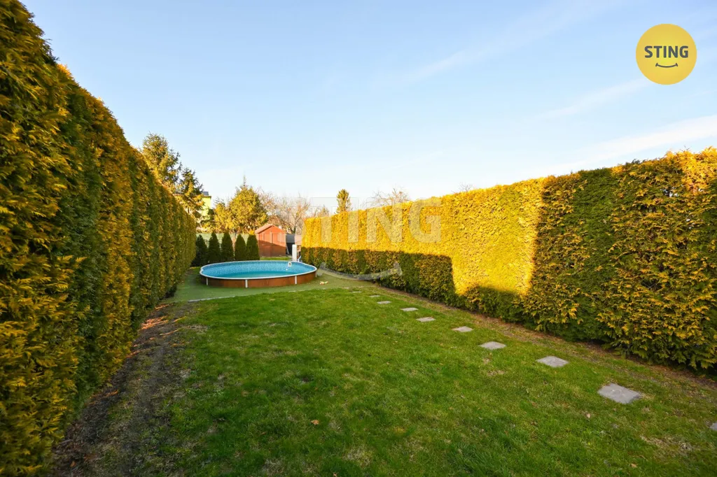 Na udržované zahradě se nachází pergola ideální pro posezení s rodinou či přáteli, bazén pro letní osvěžení a praktický zahradní domek na nářadí a další vybavení. Zahrada nabízí dostatek prostoru pro relaxaci i rodinné aktivity.