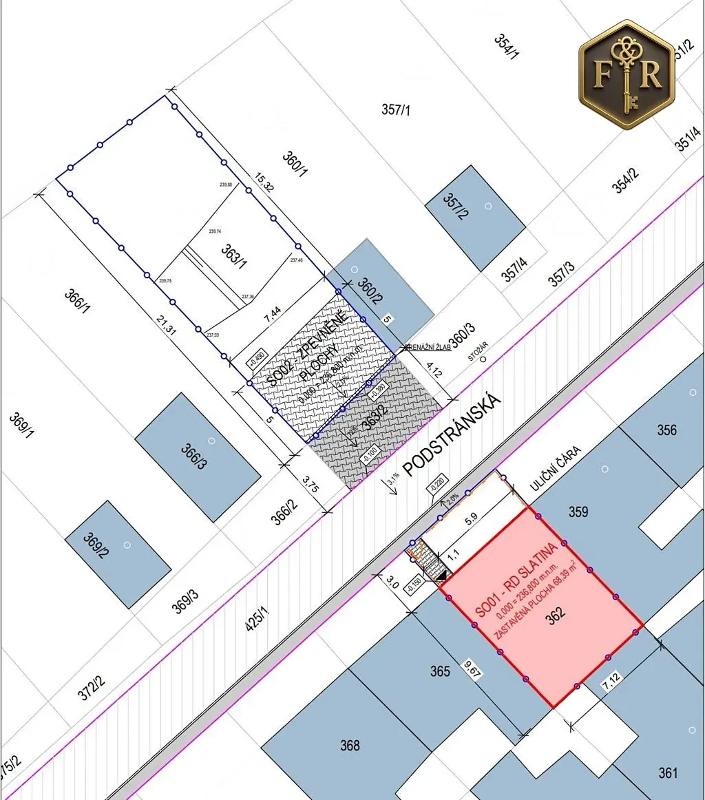 K prodeji nabízíme pozemek pro výstavbu řadového rodinného domu v žádané lokalitě Brno – Slatina, ulice Podstránská.