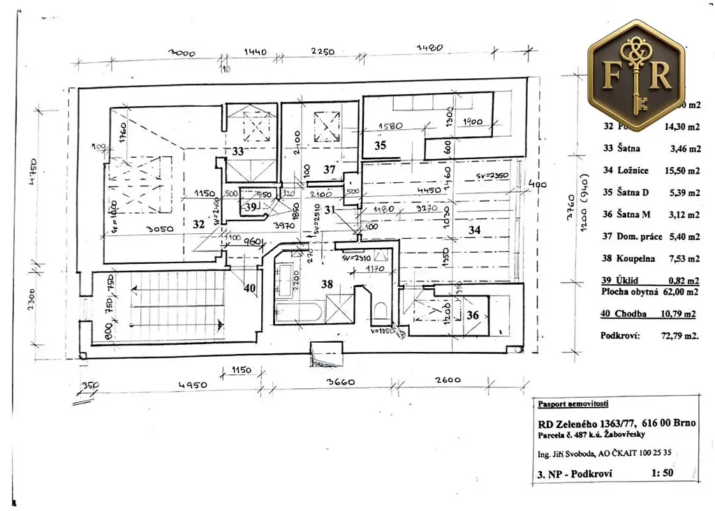 4+1 ve 2.NP a v podkroví (celkem 72,57m² + 62m²)