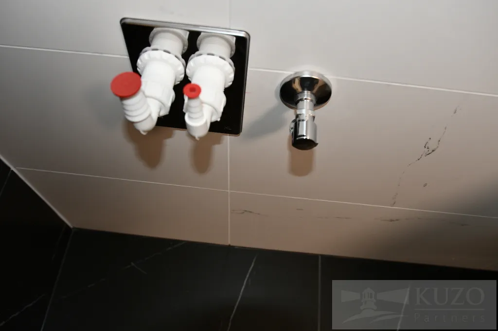 Koupelna poskytuje komfortní prostor se sprchovým koutem a toaletou. Koupelna je vybavena přípravou na pračku i sušičku (samostatný odpad), což zvyšuje komfort každodenního bydlení.