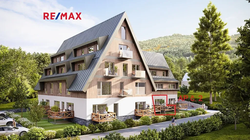 Prezentovaný apartmán č. 2 o dispozici 1+KK se nachází v přízemí a disponuje podlahovou plochou 40,2 m². K jednotce náleží terasa (JIHO -ZÁPADNÍ ORIENTACE) o velikosti 9m², který umožňuje relaxaci s výhledem na okolní přírodu. K apartmánu dále náleží privátní uzamykatelná kolárna + lyžárna (2,5m²), možnost využívat společného wellness.