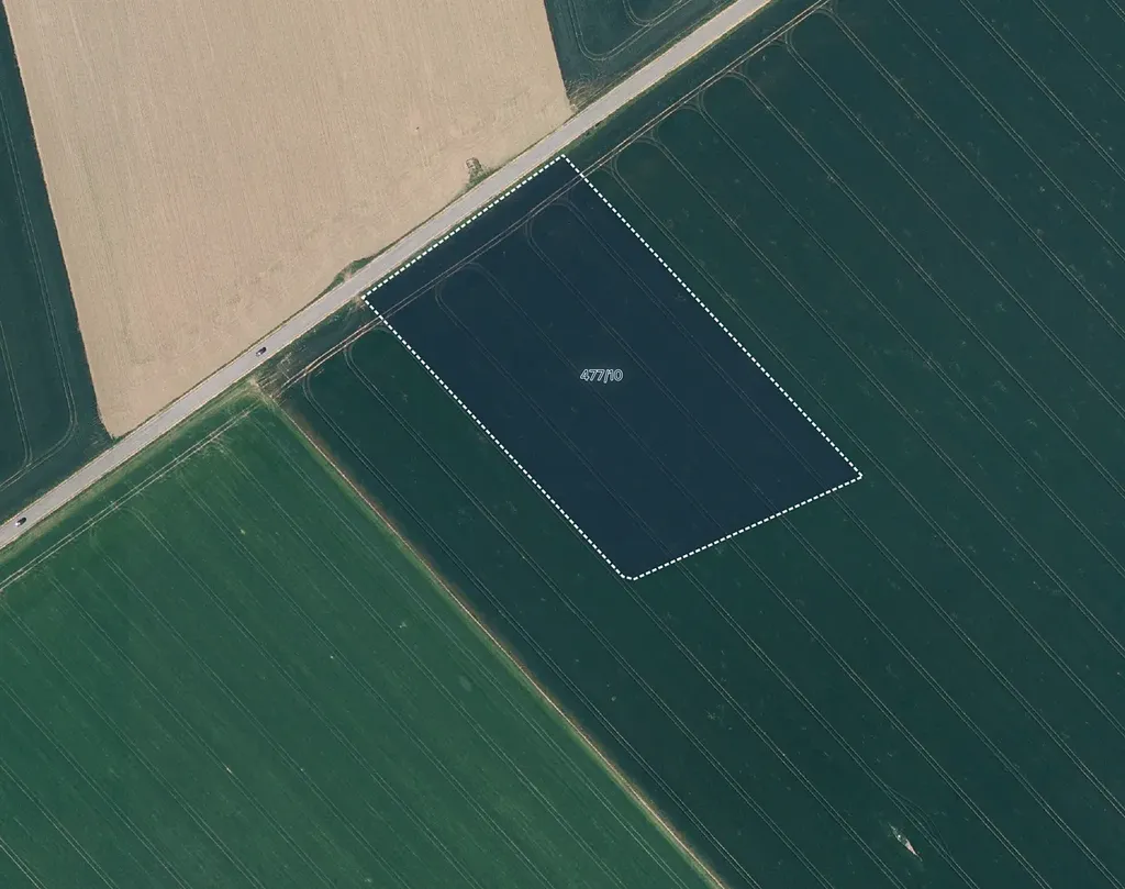 Parcela je zapsána pod číslem 477/10 na listu vlastnictví 301. Nachází v zemědělsky aktivní oblasti a vyznačuje se nadstandardní kvalitou půdy – bonita dle BPEJ dosahuje hodnoty 19,13 Kč, což představuje velmi úrodnou půdu vhodnou pro intenzivní zemědělské využití. Položena je v rovině u zpevněné komunikace. Pravidelný tvar je ideální pro rostlinnou výrobu.