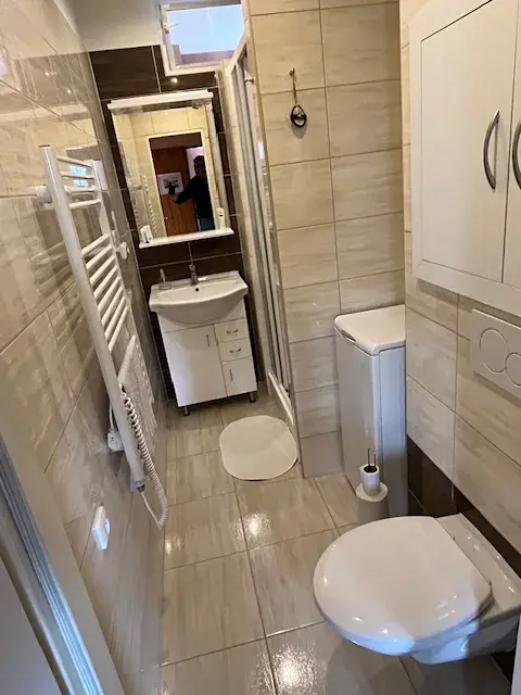 V bytě je nově zrekonstruovaná koupelna s toaletou a plastová okna s vnitřními žaluziemi.