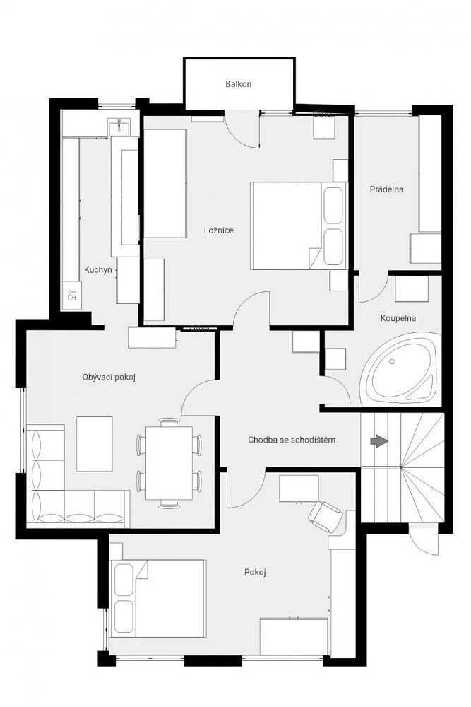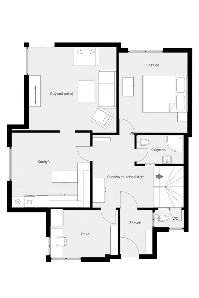 Dispozice domu je řešena tak, že umožňuje využití až dvou samostatných bytových jednotek, což je ideální například pro vícegenerační rodinu nebo pro kombinaci vlastního bydlení s pronájmem.
