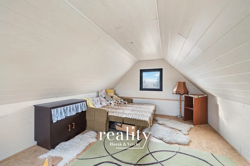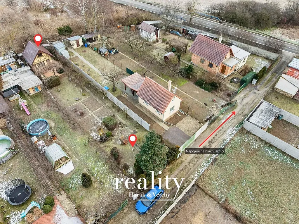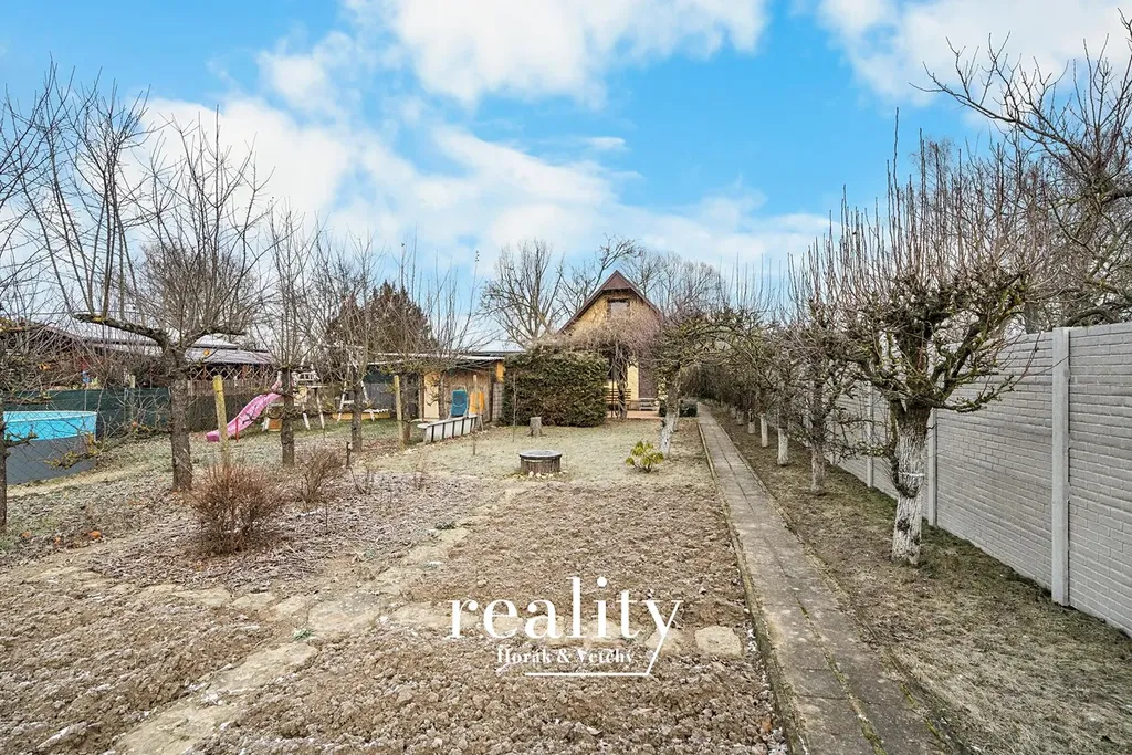 Chata se nachází na pečlivě udržovaném pozemku o výměře 413 m². Zahrada má rovinatý terén a praktický obdélníkový tvar, díky čemuž je velmi dobře využitelná. Velkou výhodou je bezproblémový příjezd přímo k pozemku, který zajišťuje pohodlnou dostupnost v průběhu celého roku.