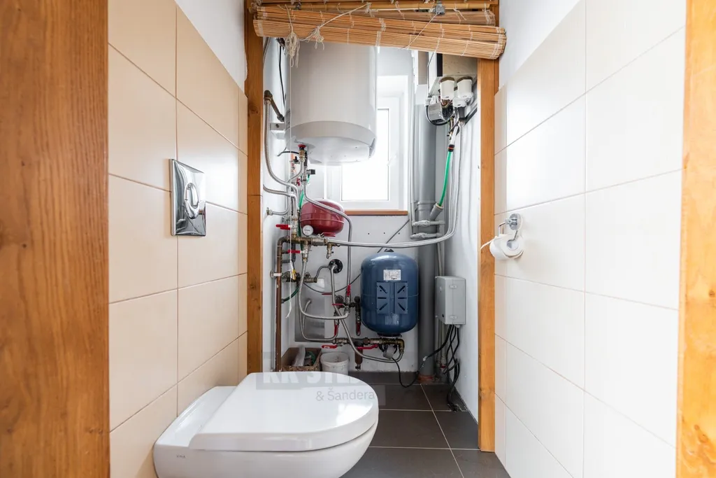 Stručný popis dispozice domu: otevřená vstupní veranda, vstupní místnost (jediná chodba v domě), menší samostatný pokoj, samostatné WC s prostorem pro el. kotel ÚT, koupelna se sprchovým koutem, s umyvadlem, s prostorem pro pračku a oknem, samostatný pokoj s oknem do zahrady, hlavní obytná místnost se vstupem na zahradní terasu, s krbovými kamny a se schodištěm do podkroví, kuchyň s linkou a s oknem, v podkroví domu otevřená obytná místnost s prostorem ložnice, s prostorem sociál a s pracovním prostorem.
