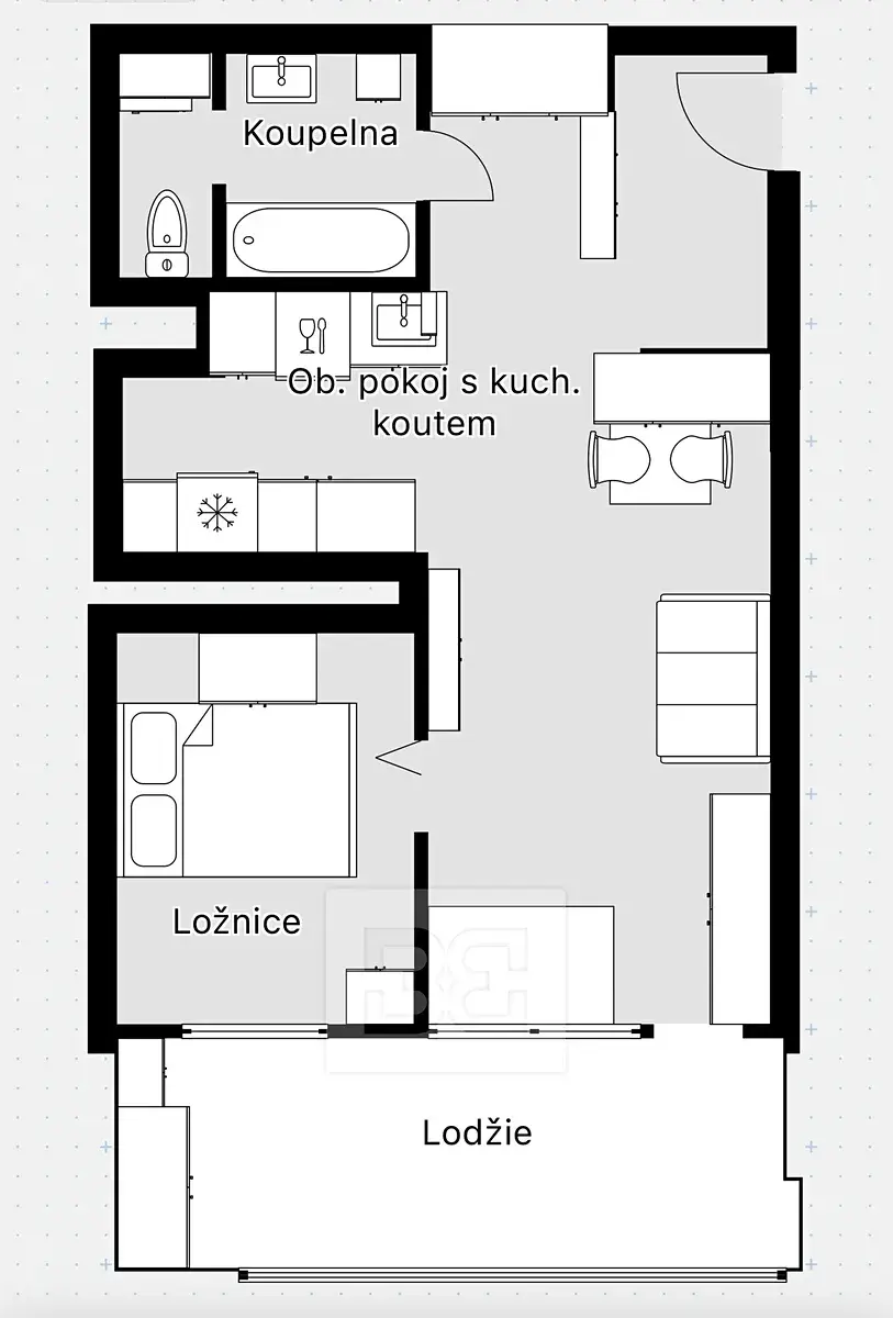Velkou předností bytu je prostorná lodžie o hloubce 1,9 m, která se táhne podél obou obytných místností. Díky zasklení a zastínění je lodžie využitelná téměř po celý rok a nabízí široké možnosti relaxace i praktického využití. Zároveň je byt velmi energeticky nenáročný, i vzhledem k zateplení a kvalitním trojsklům.