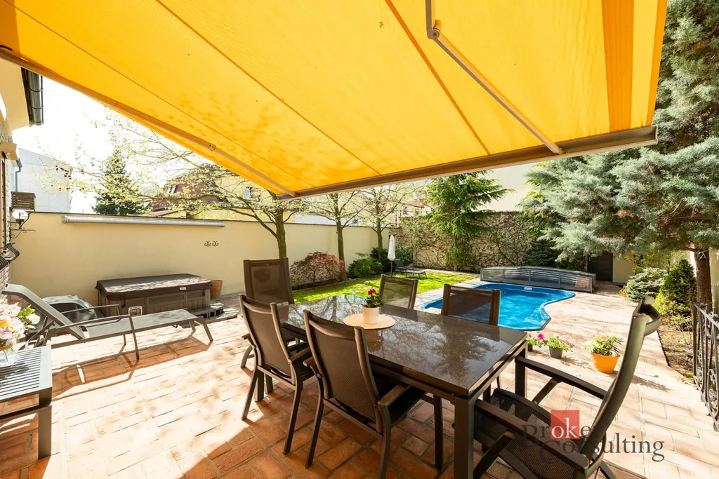 Exkluzivně nabízíme k prodeji krásný rodinný dům v klidné části Benešova nedaleko centra města. Prostorný dům zařízený ve vysokém standardu s dispozicí 6 + 1 a užitnou plochou 270 m2 stojí na vlastním pozemku o výměře celkem 454m2. Stavba postavená původně v roce 1927 prošla v roce 2002 důkladnou rekonstrukcí, která kromě změny dispozic zahrnovala také kompletní výměnu rozvodů, oken a dveří, ale také pečlivou izolaci zdiva. V prvním nadzemním podlaží se nachází prostorný obývací pokoj s krbem a navazující jídelnou, kuchyň, WC/sprcha, spíž a předsíň. Ve druhém nadzemním podlaží najdete ložnici se šatnou, dva pokoje, pracovnu a velkou koupelnu. K dispozici je také dobře přístupné obytné podkroví, které lze využít podle potřeby nových majitelů. V suterénu najdeme technickou místnost a hernu s kulečníkem. Ze stylové kuchyně osazené kvalitními spotřebiči Miele se vstupuje na prostornou terasu s posezením pod markýzou a navazující vzrostlou zahradu s velkým bazénem s protiprodem a vířivkou. Na opačném konci pozemku se nachází prostorná garáž pro dva vozy s dílnou/skladem. Vzrostlé stromy na pozemku zajišťují maximální soukromí a pohledově odstiňují prostor od sousedních nemovitostí. Nemovitost se nachází jen tři minuty chůze od centra města a v okolí lze najít veškerou občanskou vybavenost včetně polikliniky, mateřské školy, tří škol, sportovišť a několika obchodů. Důležitou informací pro ty, kteří marně hledají bydlení v rodinném domě v Praze za přijatelnou cenu je, že z nedalekého vlakového nádraží se za 39 minut rychlíkem dostanete do centra Prahy (Hlavní nádraží). Dům je nyní ihned připravený k nastěhování. Dům doporučujeme vážným zájemcům o špičkové bydlení v centru krásného středočeského města k osobní prohlídce.