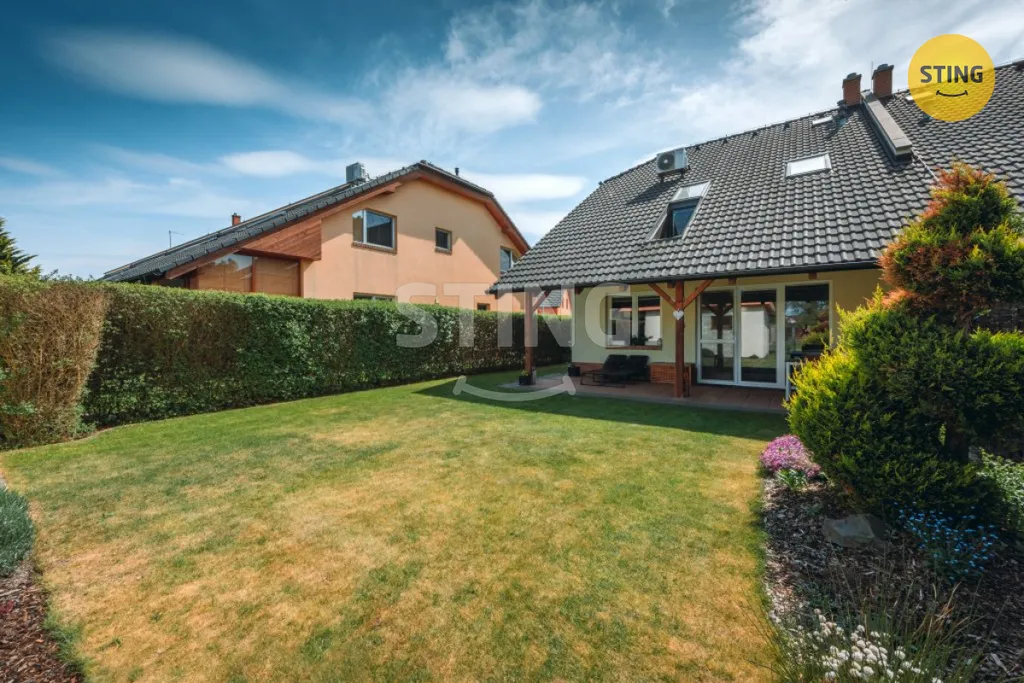 Nabízíme k prodeji velmi pěkný řadový rodinný dům v Pardubicích (ul. Do Polí, Svítkov). Tento zděný dům o zastavěné ploše 100 m2 se nachází na pozemku o celkové rozloze 235 m2. Dispozice domu: v 1. NP je garáž zádveří, chodba, komora, technická místnost, toaleta a obývací pokoj s kuchyní. Ve 2. NP jsou 3 pokoje, šatna s pracovnou a koupelna s toaletou. Dům je vytápěn plynovým kotlem 1. NP podlahové topení a ve 2. NP radiátory) a lze dotápět krbem v obývacím pokoji. Samozřejmostí je klimatizace v podkrovní části domu. Součástí prodeje je také podíl na pozemku o rozloze cca 1000 m², který je společně využíván vlastníky čtyř sousedních domů. Na pozemku se nachází prostorný bazén, party domek, dětské hřiště a studna. Tento společný prostor nabízí ideální zázemí pro odpočinek, společenské akce i rodinné aktivity. V okolí je veškerá občanská vybavenost (školka, škola, obchody, MHD). Pro sjednání prohlídky či další informace kontaktujte makléře. Do konce března 2026 nabízíme prostřednictvím našeho partnera úrokové sazby od 4,29 % p.a. Více informací Vám sdělí náš specialista na prohlídce.