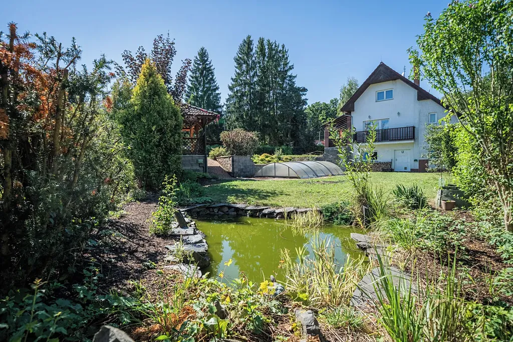 Příjemnou atmosféru při výhledech z domu, nebo při posezení na terase dotváří udržovaná zahrada nepravidelného tvaru o výměře 1195m2.