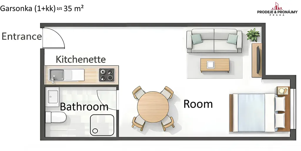 1× garsonka (cca 35 m²)
