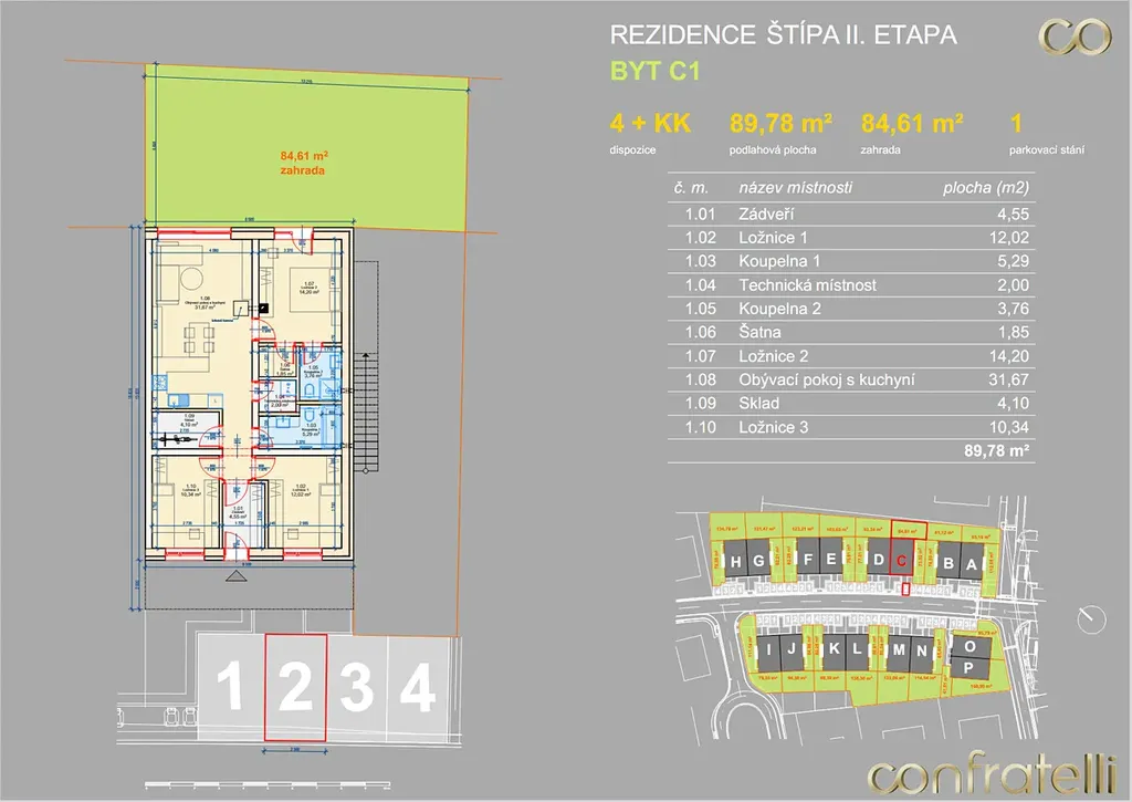 Moderní byt 4+kk se zahrádkou ve Zlíně – Štípě označený jako C1