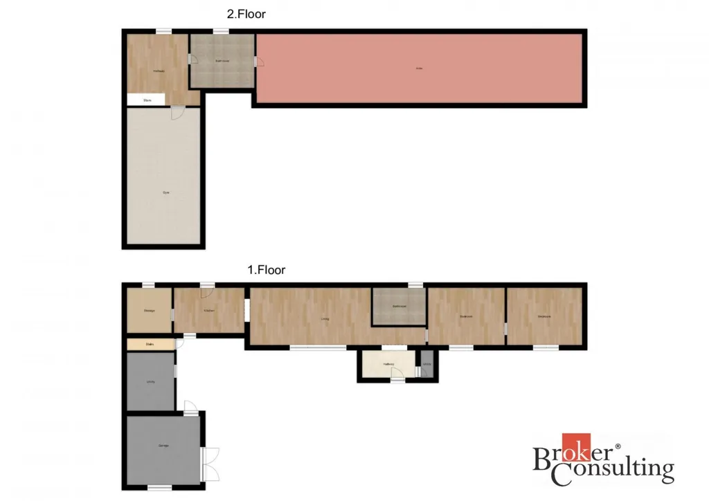 Dispozice domu: na přízemí se nachází vstupní hala, koupelna s vanou, sprchovým koutem, toaletou s umyvadlem, dvěma ložnicemi, kde každá disponuje prostornou vestavnou šatní skříní. Světlý obývací pokoj s jídelnou je útulný i díky krbovým kamnům, navazující kuchyň umožňuje propojení s obývacím pokojem, je zde i prostorný špajz. Z kuchyně je přímý vstup na terásku za domem, kde lze ráno ráno posnídat. Hlavní venkovní sezení je situované u obývacího pokoje v zahradě. Samostatně přístupná technická místnost, která slouží i jako prádelna, s pračkou a se sušičkou je hned vedle garáže (22 m2). Do patra se dostaneme po točitých schodech, tuto část majitelé využívají pro relaxaci. Najdeme zde velkou koupelnu s toaletou, se sprchovým koutem, saunou, odpočívárnu a prostornou pracovnu s fitness koutem.