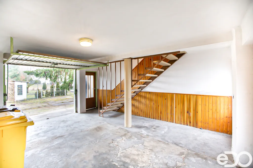 Součástí domu je také garáž a zahrada (s možností vjezdu v zadní části pozemku), která poskytuje dostatek soukromí a prostor pro relaxaci, zahradničení nebo rodinné aktivity. Vytápění domu je krbovými kamny, elektrickými akumulačními kamny a kamny na tuhá paliva. Podlahy jsou betonové, okna a dveře původní dřevěná. Plyn do domu rozveden není, přípojka se ale nachází přímo na hranici domu. Odpad je řešený septikem s přepadem do veřejné kanalizace. Ohřev vody elektrickým bojlerem, který se nachází ve sklepě v zadní části domu, stejně tak jako domácí vodárna. Kopaná studna je přímo na dvorku.