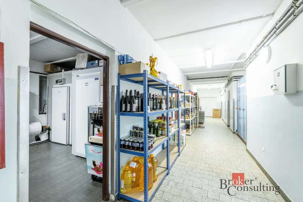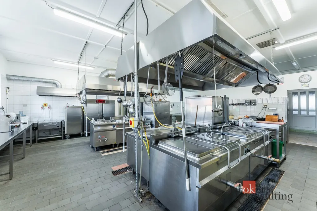 Velkou předností nemovitosti je rozsáhlá profesionální kuchyně ve velmi dobrém technickém i hygienickém stavu, vybavená gastronomickou technologií, nerezovými pracovními plochami, varnými bloky, konvektomatem a digestořemi. Součástí je také kompletní zázemí včetně přípraven, skladů a velkého chladicího boxu.