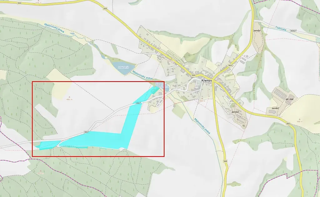 V kú Křenov se jedná o všechny pozemky na LV 133.