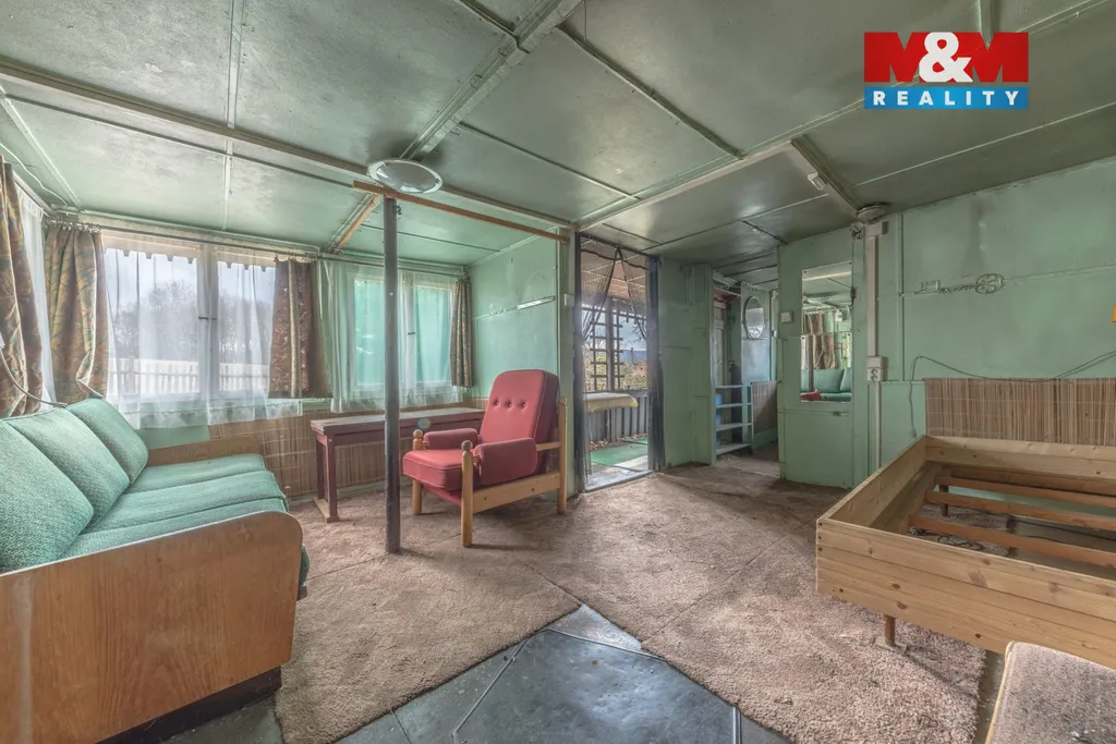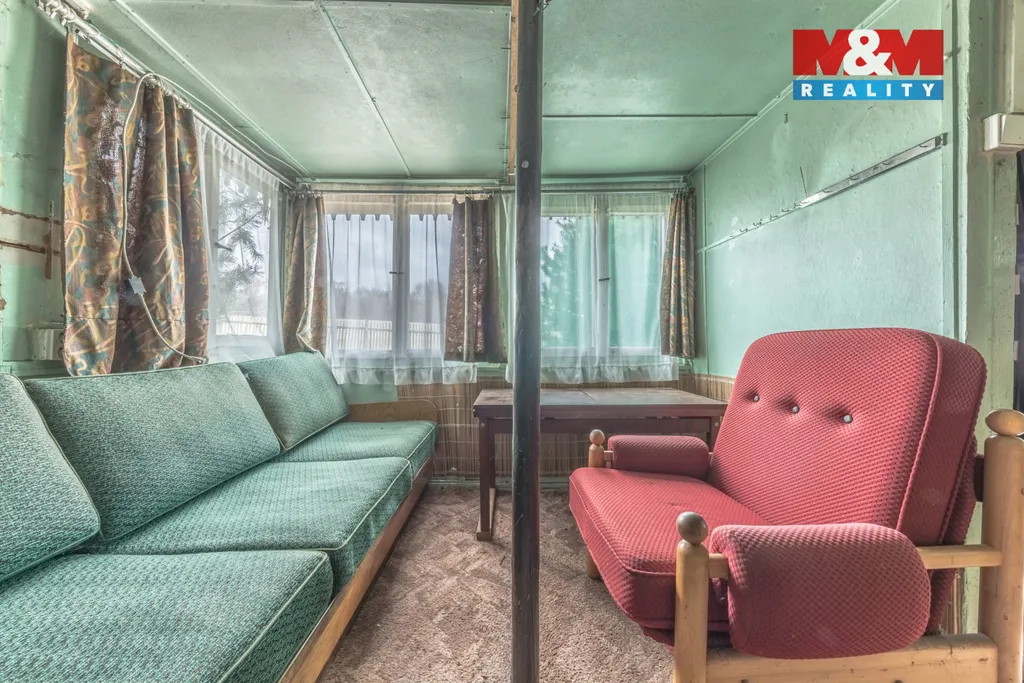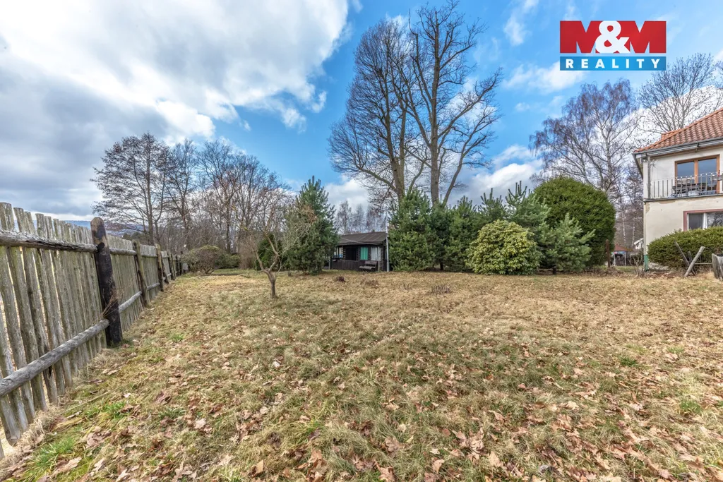 Na zahradě se nachází dřevěná chatka, vhodná k rekonstrukci dle vlastních představ. Dále se zde nachází starší skleník, udírna, ohniště, uzamykatelná bouda na uskladnění nářadí, suché WC.
