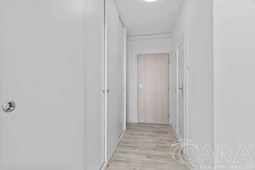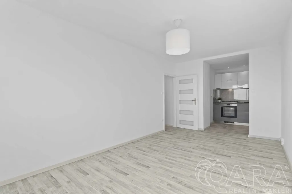 Dispozice bytu je velmi praktická – obývací pokoj s kuchyňským koutem, samostatná ložnice, chodba s velkou vestavěnou skříní a koupelna. Kuchyňská linka je vybavena plynovým sporákem, troubou a myčkou. Byt se pronajímá nezařízený, takže si jej můžete zařídit přesně podle svých představ. K bytu náleží také sklep.