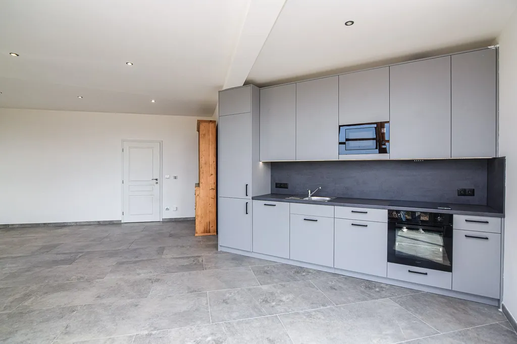 Dominantou bytu je prostorný obývací pokoj s kuchyňským koutem, kde se nyní instalovala kuchyňská linka vyrobena na míru s veškerými vestavěnými spotřebiči.