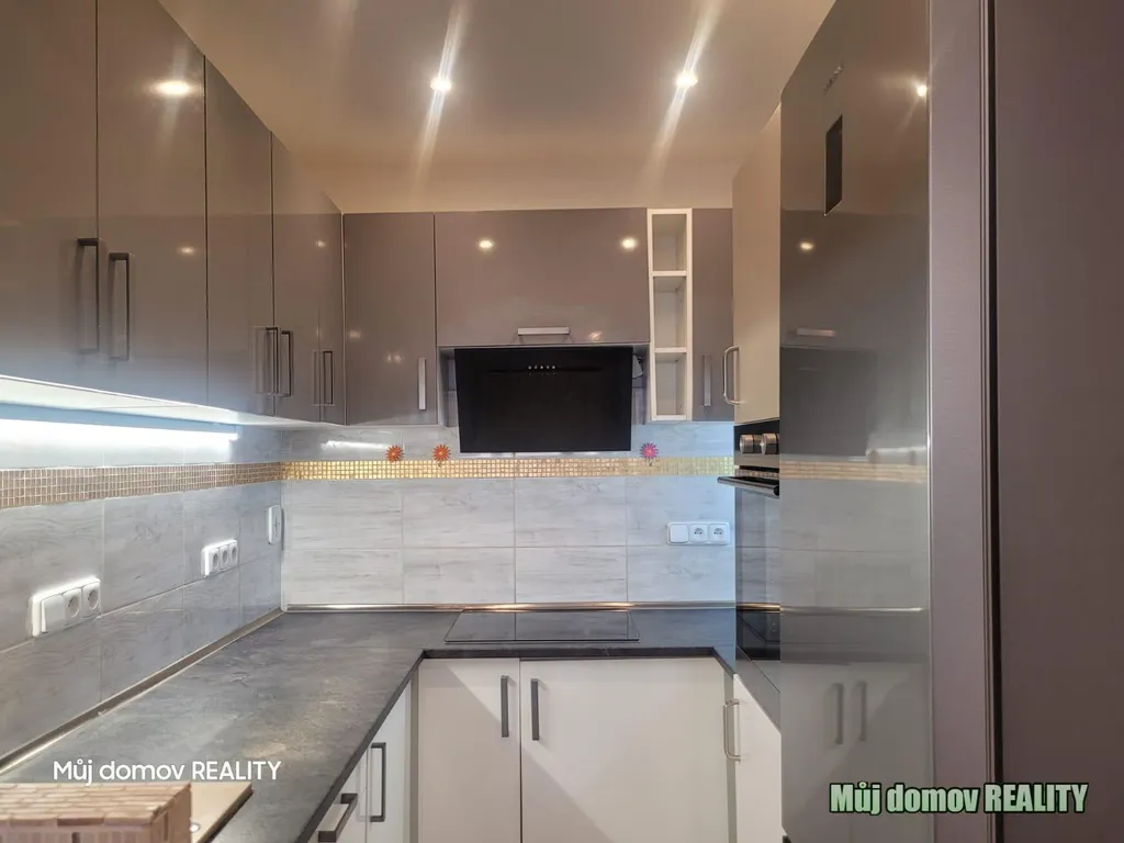 Byt je částečně zařízený k dispozici je plně vybavená kuchyňská linka, lednice, sporák, trouba a dostatek úložných prostor. Chybí pouze postel a sedací souprava.