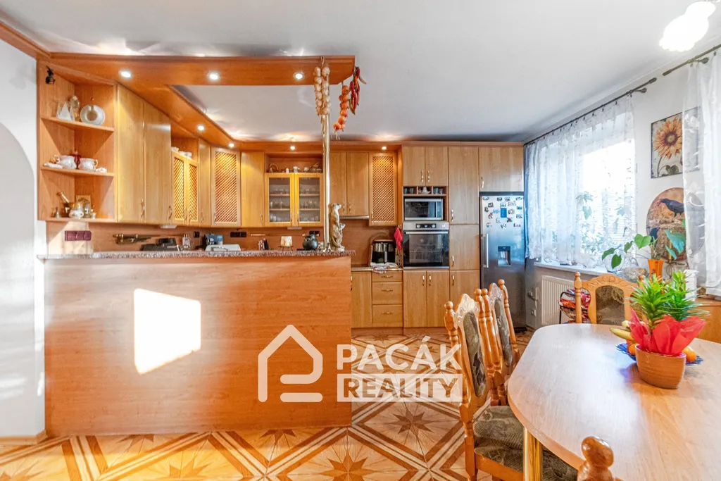 Ve výhradním zastoupení majitelů nabízíme k prodeji v atraktivní lokalitě Plumlovské přehrady zrekonstruovaný přízemní rodinný dům s dispozicí 3+1 o užitné ploše 151 m2 s bazénem, garáží a zastřešenou pergolou na Plumlově na prosluněném pozemku o výměře 368 m2 orientovaném na jihozápad. Dům se nachází v ulici Dukelská v docházkové vzdálenosti do centra města a Plumlovské přehrady. Rodinný dům díky vkusné rekonstrukci působí útulně a nabízí uživatelům nadstandardní zázemí pro společné chvíle, ale i dostatek prostoru pro relaxaci a soukromí. Dispozice domu nabízí k užívání prostornou kuchyň (21,1 m2) s kapacitní kuchyňskou linkou se zabudovanými spotřebiči (indukční varná deska s troubou, myčka) a s jídelním stolem. Přirozené centrum rodinného domu tvoří rozsáhlý obývací pokoj o ploše 37,4 m2 propojený s kuchyní a s výstupem balkonovými dveřmi na terasu s bazénem. V obývajícím pokoji jsou umístěna výkonná kanadská krbová kamna. Na obývací pokoj navazuje ložnice o ploše 14,6 m2, z níž je také přístup na terasu. Ložnice je propojena s praktickou kapacitní šatnou o ploše 9,5 m2. Tyto obytné části propojuje prostorná chodba s dětským pokojem o ploše 26,3 m2, z chodby je samostatný vstup na WC a do koupelny se sprchovým koutem a vanou a připojením na automatickou pračku. Za koupelnou byla vybudována technická místnost s plynovým kotlem a vstupem do sklepa o 4 m2. Z technické místnosti je i vstup do dílny. Rodinný dům nabízí možnost využití půdních prostor pro skladování, popř. pro rozšíření obytných ploch. Nadstandardní zázemí pro majitele domu poskytuje prostorná terasa s bazénem (zakrytým posuvnou plastovou střechou) o velikosti 6 x 3 m s filtrací a ohřevem vody tepelným čerpadlem. Z terasy je přístup do zastřešené pergoly s dřevěným zahradním nábytkem, z níž je krásný výhled na plumlovský zámek. Majitelé domu mají možnost využívat k parkování jednak garáž, která je přístupná z Příční ulice, nebo parkovat na vlastním pozemku – na přístupu do dvorního traktu domu, popř. využívat jedno parkovací místo před domem. Cihlový rodinný dům prošel v roce 2000 kompletní rekonstrukcí, v jejímž rámci byly zbudovány nové elektrorozvody s měděnými vodiči, nové rozvody vody a odpadů, nové rozvody ústředního topení včetně nových radiátorů, v roce 2021 byl osazen nový kondenzační plynový kotel. V interiéru domu byly provedeny nové omítky, položeny nové podlahové krytiny a osazena nová plastová okna a dveře. V rámci rekonstrukce byla na sedlovou střechu položena nová střešní krytina – pálená taška, umístěny nové svody dešťových vod. Plášť domu dostal novou fasádu. Objekt je chráněn proti nežádoucímu vniknutí alarmem. Dům je napojen na elektropřípojku 220 a 380 V, na plynopřípojku, městský vodovod a kanalizaci, vytápění domu je zajištěno ústředním topením s plynovým kondenzačním kotlem, který zajišťuje ohřev vody. Vytápění je možné taktéž kanadskými krbovými kamny. Rodinný dům je situován v klidné části města s minimálním dopravním zatížením. Dispozice rekonstruovaného rodinného domu, jeho technické zázemí a vybavení umožňuje uživatelům bydlení v komfortních podmínkách. Blízkost Plumlovské přehrady nabízí řadu možností k rekreačnímu i sportovnímu vyžití. Veškerá občanská vybavenost se nachází přímo ve městě Plumlov. Kupujícím se nabízí jedinečná příležitost pořídit si ve velmi atraktivní lokalitě zrekonstruovaný rodinný dům s nadstandardním zázemím. S financováním nákupu nemovitosti vám poskytne informační servis náš finanční poradce. Doporučujeme prohlídku. Pro více informací a sjednání prohlídky nás kontaktujte.