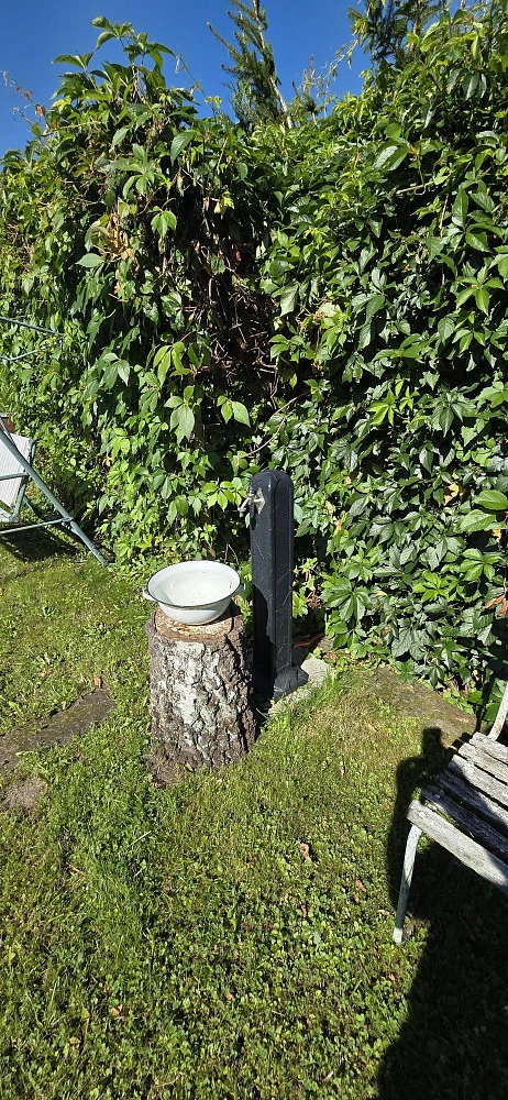 Chata je v dobrém stavu, jedna obytná místnost s kuchyní, další pokoj na spaní je možné udělat ze skladu v chatě, přípojka vody i elektřiny, velký skleník, bazén, suché WC . Hezké klidné místo na víkendy i letní bydlení.