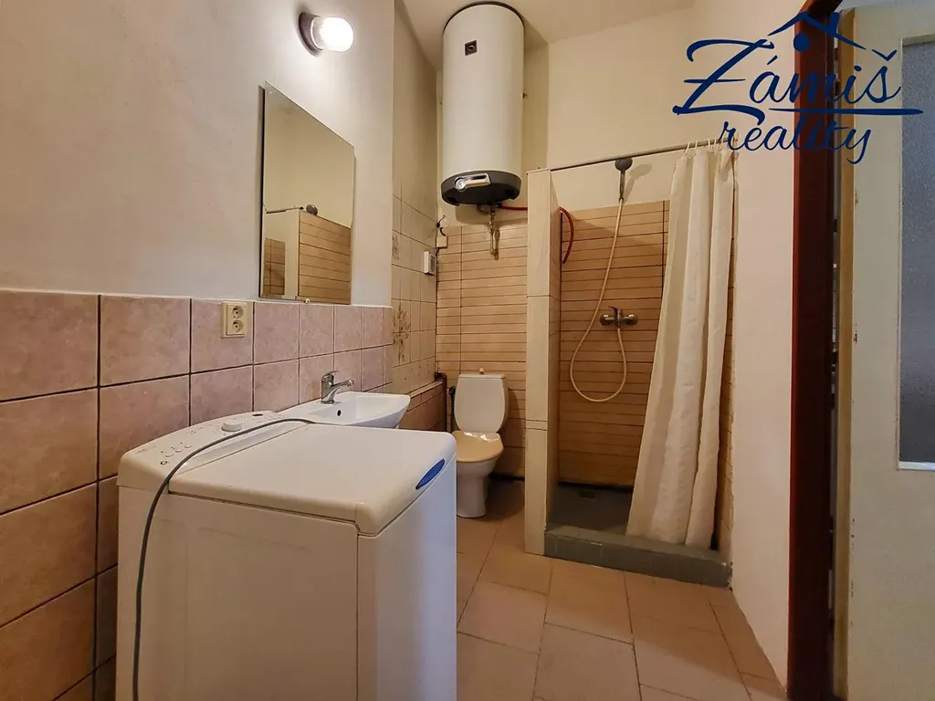 V koupelně je umístěn vlastní el. bojler na teplou vodu, vytápění je zajištěno centrálně pro celý dům.