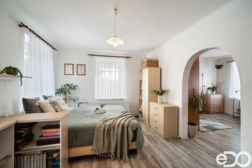 Součástí je také komora, přes kterou je možné vejít do veliké garáže, která má cca 70 m2 a je vhodná nejen pro parkování, ale i pro dílnu nebo podnikání. V případě potřeby dalšího prostoru je možné využít i velké půdní prostory.