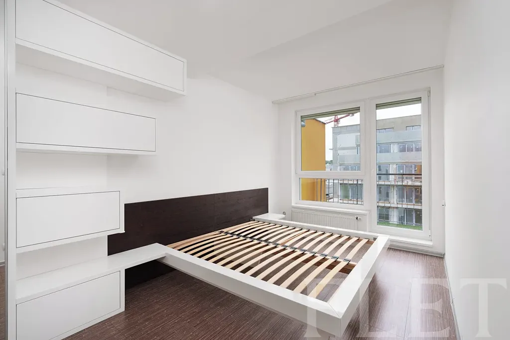 Hledáte moderní a praktické bydlení s příjemným venkovním prostorem? Máme pro vás nabídku částečně vybaveného bytu 2+kk ve Vysočanech, který vás zaujme svým promyšleným dispozičním řešením a příjemnou atmosférou. Z obou pokojů se vstupuje na hezkou malou terasu o velikosti 5 m² s umělým trávníkem a výhledem na okolní novostavby – ideální místo pro ranní kávu nebo večerní relax. V ložnici najdete postel (bez matrace), velkou vestavěnou šatní skříň s osvětlením a praktické police. Obývací prostor s elegantní kuchyňskou linkou je navržen tak, aby se zde pohodlně žilo – barový pult se židlemi šetří místo a zároveň vytváří útulné posezení. Kuchyně je vybavena všemi moderními vestavěnými spotřebiči. V koupelně je vana a přípojka na pračku, další úložný prostor poskytuje komora v chodbě. Byt je vybaven elektrickými předokenními screeny na dálkové ovládání, které zajišťují soukromí i komfort v letních dnech.
