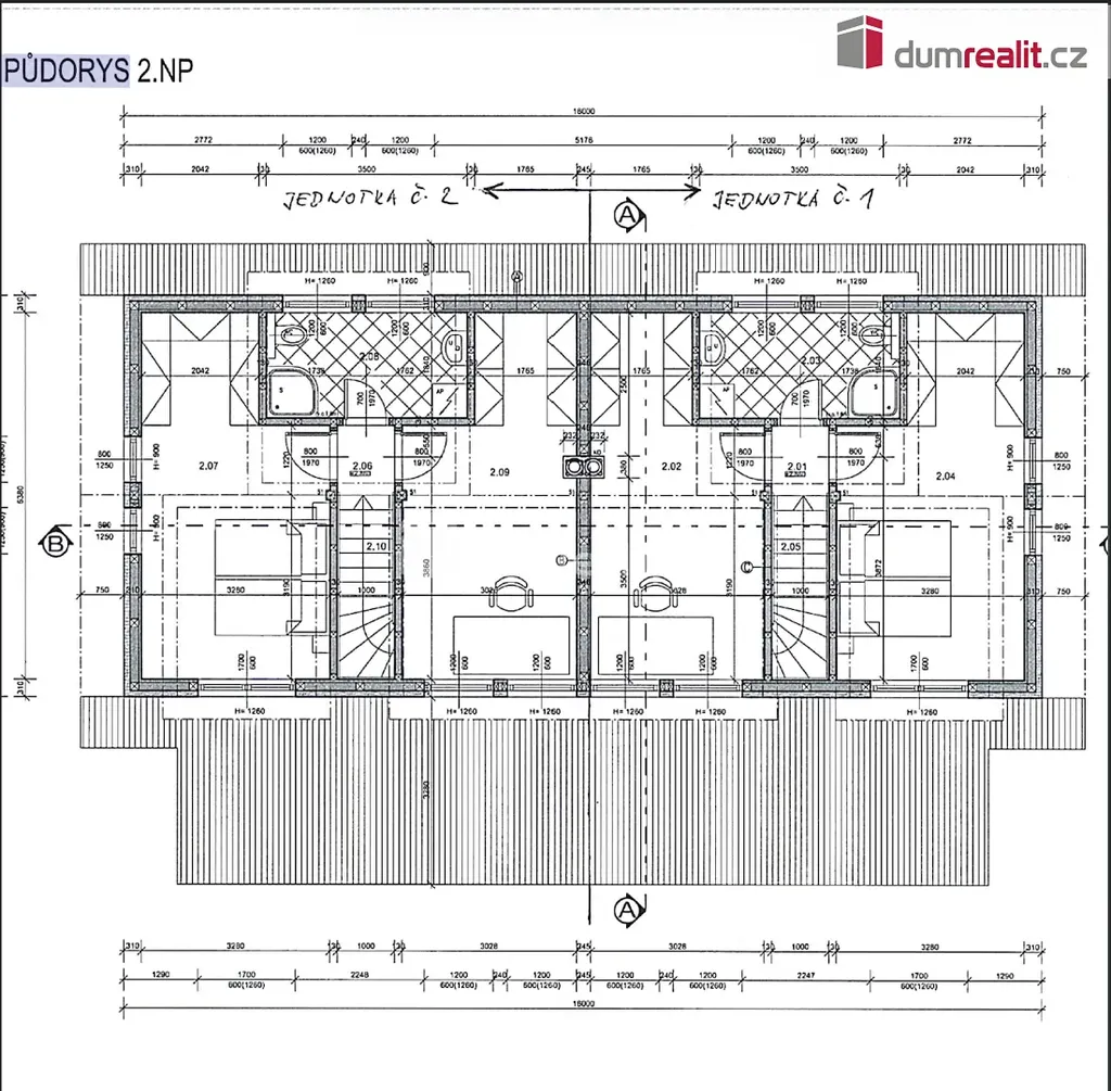 V patře jsou dvě ložnice a koupelna se sprchovým koutem, umyvadlem a toaletou.