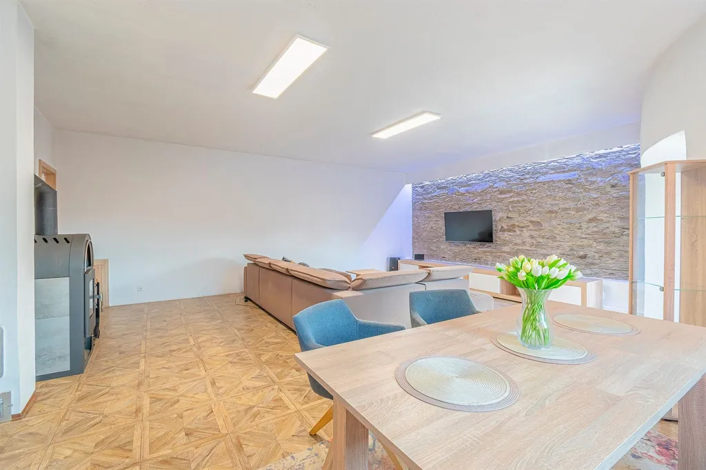 Zcela nová je střecha (krovy dřevěné, krytina hliníková), kompletně nové skladby podlah včetně izolací (hydro i tepelných), komplet nové rozvody instalací (elektřina, odpady, voda), izolace stropů a stěn, fasáda se zateplením (šedý polystyren), podhledy SDK, okna plastová se žaluziemi (trojskla). Vytápění je kombinované ústřední tuhá paliva (krb s výměníkem) + elektrokotel zn. Protherm Ray. Ohřev UV kombinovaný kamna na TP s výměníkem (800l zásobník) + možnost ohřevu elektřinou.