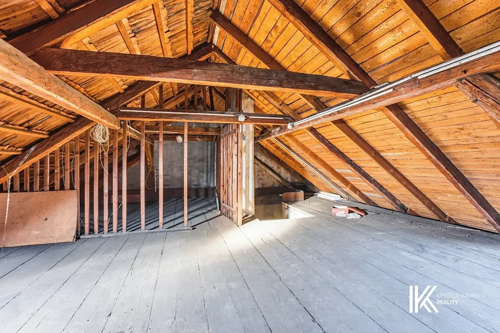Třetí podlaží tvoří půda, která je v současnosti otevřeným prostorem, ale nabízí velmi zajímavý potenciál pro vestavbu. Otevřením střechy vikýři a úpravou krovu zde může vzniknout plnohodnotné obytné patro. Podle zvoleného projektu je možné vybudovat dvě až tři menší bytové jednotky, případně mezonetové bydlení navazující na druhé podlaží. Právě tato možnost rozšíření obytné plochy výrazně zvyšuje investiční potenciál celé nemovitosti.
