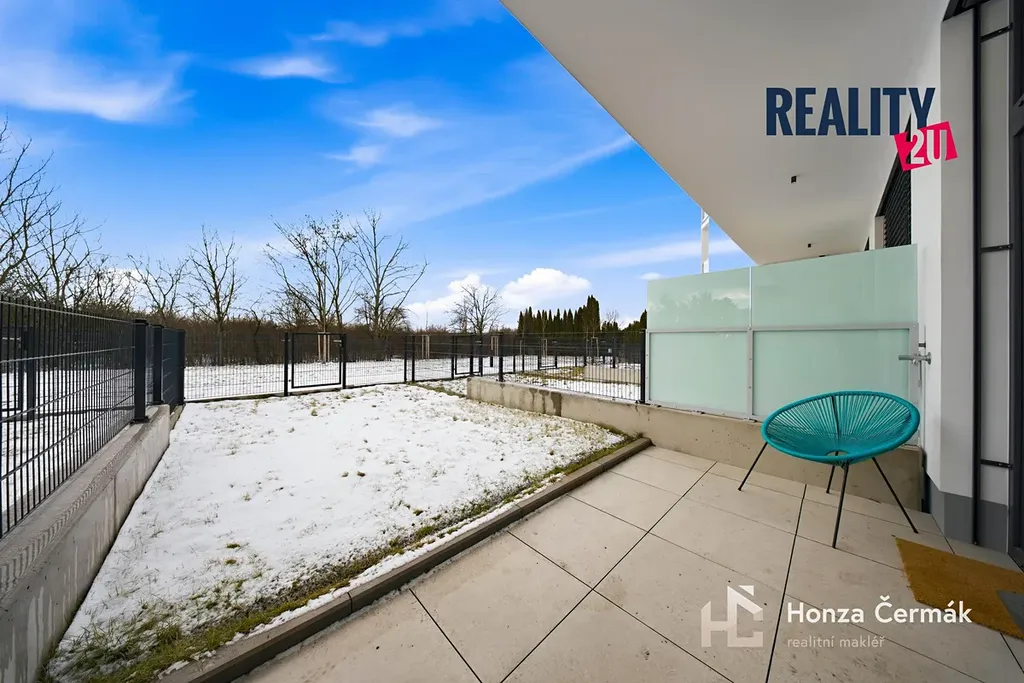 Výjimečným prvkem této nabídky je vlastní zahrada o výměře přes 24 m² s přilehlou terasou o velikosti 6,9 m². Tento venkovní prostor orientovaný do klidné části nabízí skvělou příležitost pro odpočinek na čerstvém vzduchu. Velkou výhodou z hlediska bezpečnosti je skutečnost, že do vnitrobloku přímo za zahrádkou mají přístup pouze obyvatelé objektu. Obyvatelé domu mají navíc možnost využívat společnou střešní terasu v sedmnáctém nadzemním podlaží, odkud je úžasný výhled na panorama Brna.
